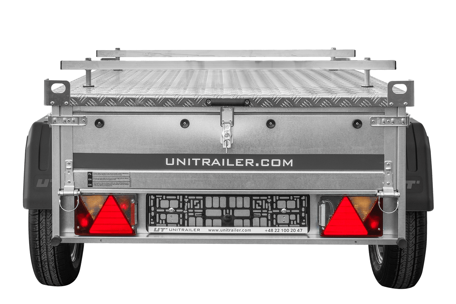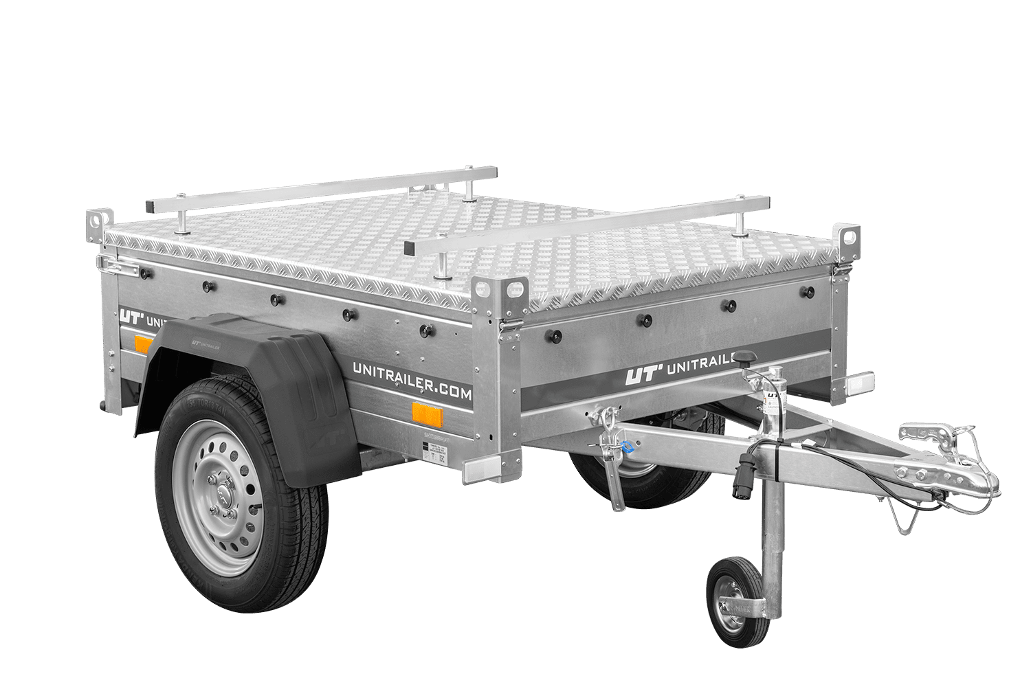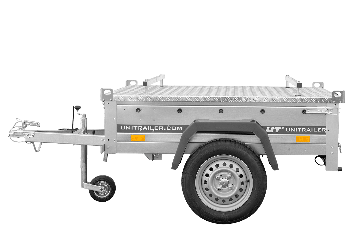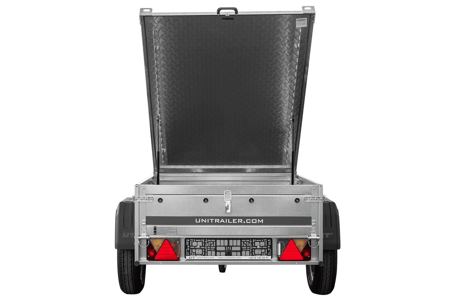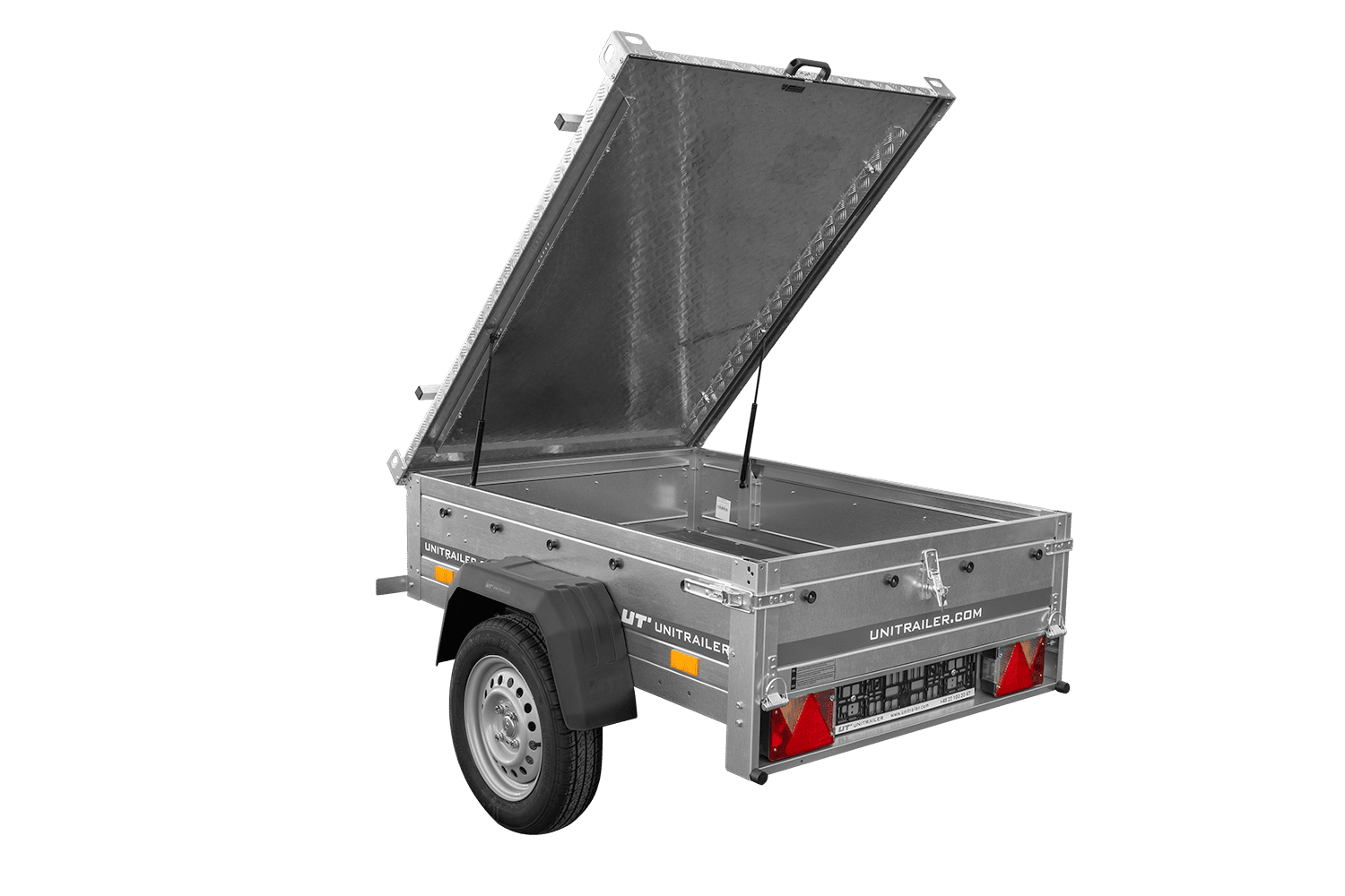 Il est équipé d'un plancher en contreplaqué phénolique de 9 mm, étanche et antidérapant. Le couvercle rigide en aluminium protège les marchandises de la pluie et de la saleté, améliorant ainsi la sécurité du transport.
