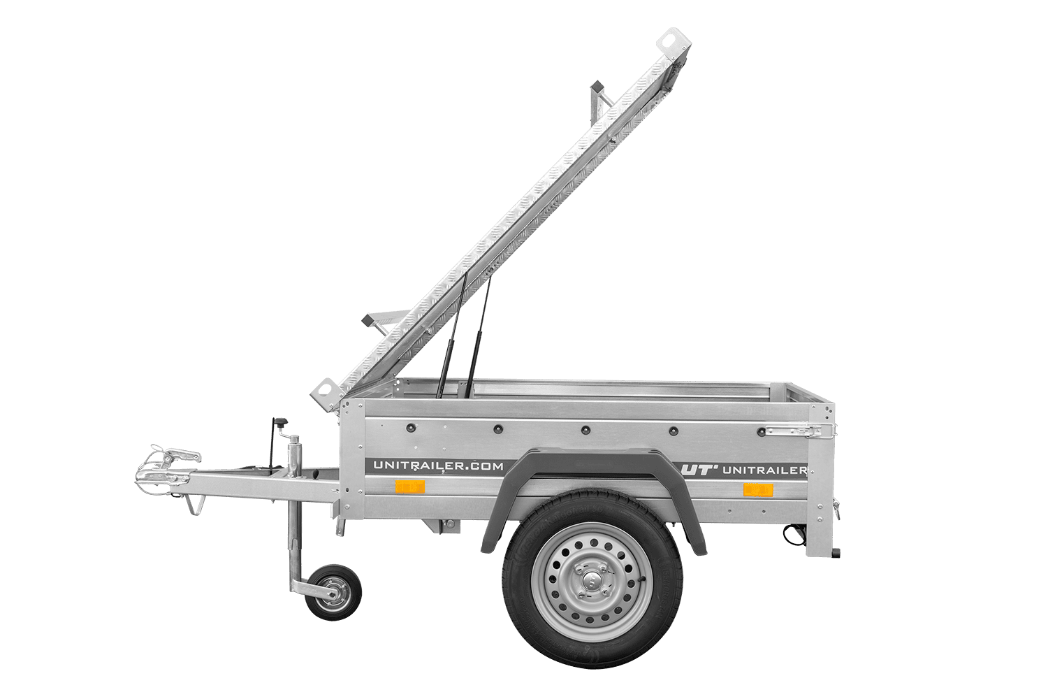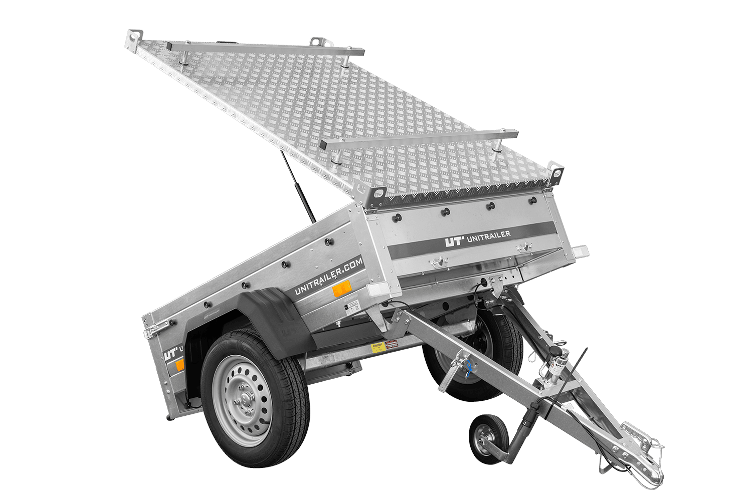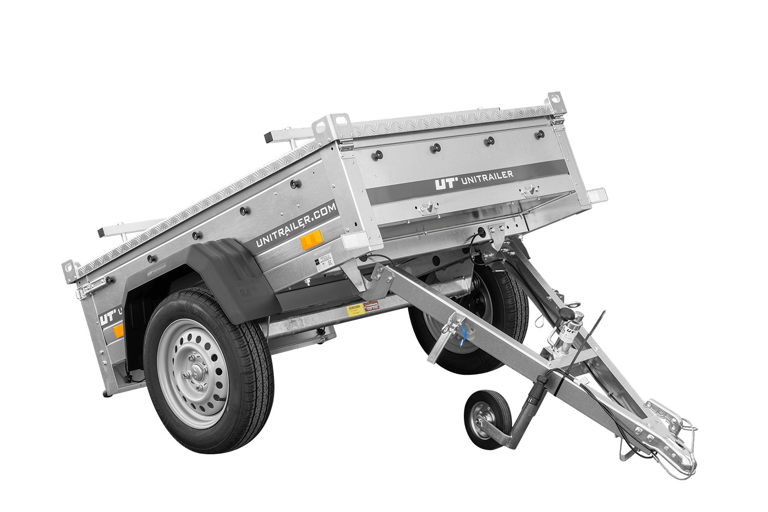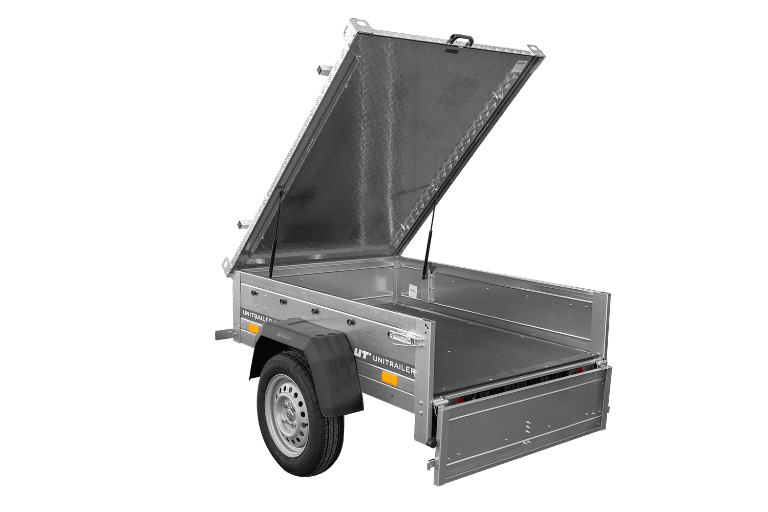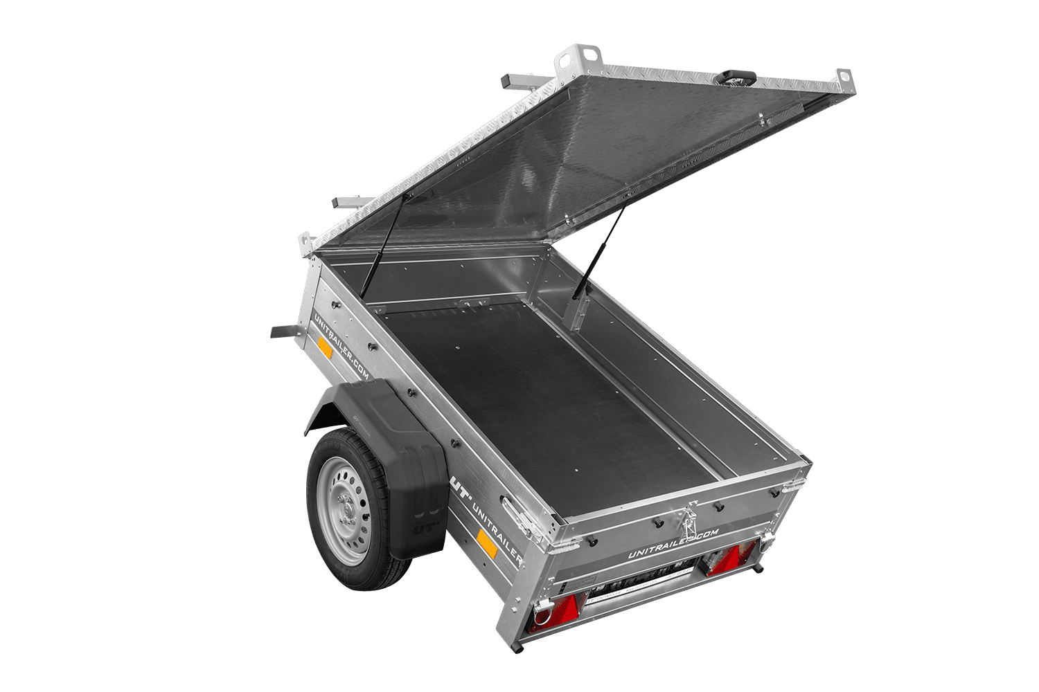 Remorque basculante 150×106 750 kg avec couvercle en aluminium